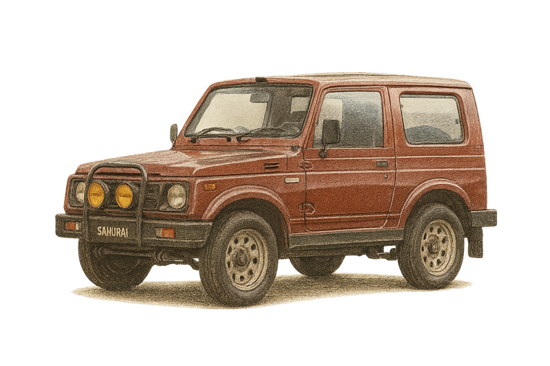 - 軽自動車の2代目ジムニー(SJ30型など)をベースに、小型乗用車規格に合わせたモデルとして誕生。当初は「ジムニー1000」として1.0Lエンジンを搭載し、主に輸出用として開発されましたが、日本国内でも販売されました。