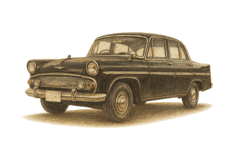 • 1959年には、テールフィンを大型化した特徴的なデザインの「スカイライン1900」も登場。日本の自動車技術の黎明期を象徴する一台です。