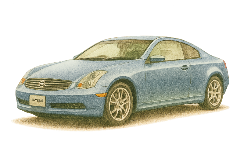 • スカイラインの歴史における最大の転換期。従来の直列6気筒エンジンと決別し、新開発のV型6気筒「VQ」エンジンを搭載。プラットフォームも、フェアレディZと共通の「FM(フロントミッドシップ)プラットフォーム」を採用し、グローバル市場を強く意識したプレミアムスポーツセダンへと生まれ変わりました。