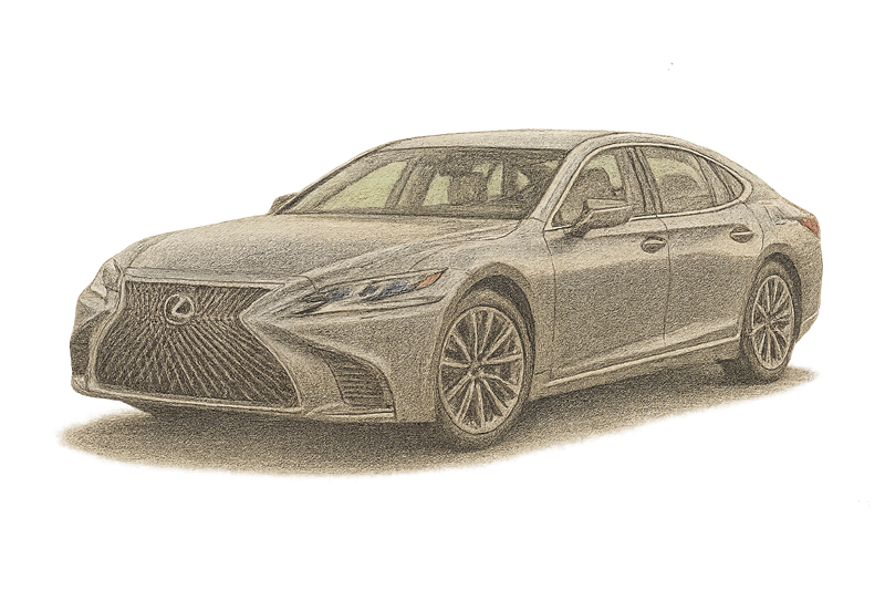 5代目レクサスLS(XF50型)は、GA-Lプラットフォームを基盤に、伝統的なセダンの概念を覆すクーペシルエットをまとったフラッグシップ。パワートレインはV8に代わり、3.5L V6ツインターボとマルチステージハイブリッドを設定。ドライバーズカーとしての資質を高めました。インテリアは「匠」の技が光る芸術的な空間。切子調カットガラスや手作業のプリーツなど、日本の美意識を随所に表現しています。先進性と感性に響く体験価値を追求した一台です。